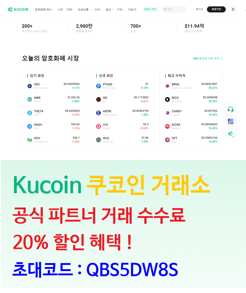 쿠코인 거래소 공식 파트너 수수료 20% 평생 할인 가입링크 :