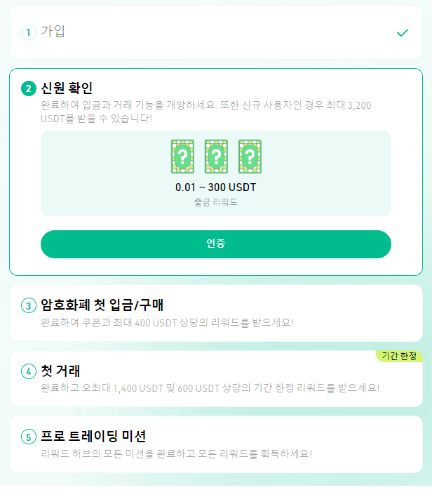 이벤트 1. 신원확인 KYC 이벤트로 최대 3,200USDT 증정 이벤트에 참여하세요 !